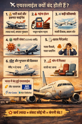 लेकिन खर्च (सैलरी, लीज, मेंटेनेंस) चलता रहा इसी वजह से दुनिया भर में कई एयरलाइंस बंद हुईं।