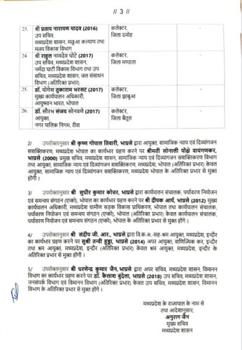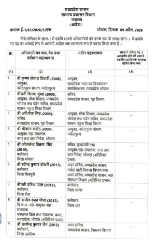 • 26 IAS के तबादले, भोपाल, रीवा सहित कई कलेक्टर बदले