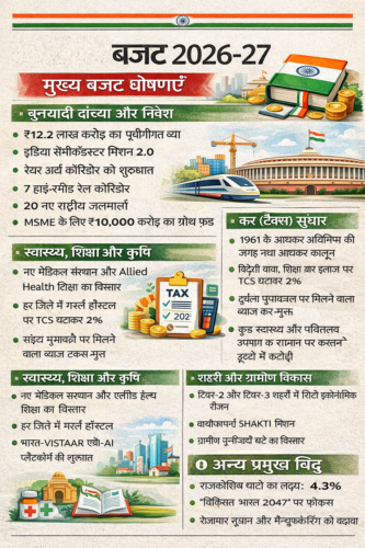 2026-27 के बजट की प्रमुख घोषणाएं।