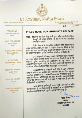 IPS एसोसिएशन ने इस बात पर भी गहरा खेद व्यक्त किया कि उसे 21 अप्रैल—सिविल सेवा दिवस—के दिन यह प्रेस बयान जारी करने के लिए मजबूर होना पड़ा। एसोसिएशन के अनुसार, यह दिन लोक सेवकों के योगदान का सम्मान करने के लिए समर्पित है। इसलिए, यह बेहद दुर्भाग्यपूर्ण है कि ठीक इसी दिन एक अधिकारी को ऐसे व्यवहार का सामना करना पड़ा।
